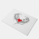 Artistisch bemalt rotes Herz mit Engelsflügeln grau, mit schwarz glatten Konturen dekoriert.