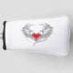 Artistisch bemalt rotes Herz mit Engelsflügeln grau, mit schwarz glatten Konturen dekoriert.