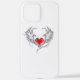 Artistisch bemalt rotes Herz mit Engelsflügeln grau, mit schwarz glatten Konturen dekoriert.
