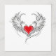 Artistisch bemalt rotes Herz mit Engelsflügeln grau, mit schwarz glatten Konturen dekoriert.