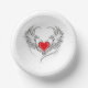 Artistisch bemalt rotes Herz mit Engelsflügeln grau, mit schwarz glatten Konturen dekoriert.