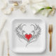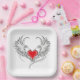 Artistisch bemalt rotes Herz mit Engelsflügeln grau, mit schwarz glatten Konturen dekoriert.