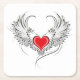 Artistisch bemalt rotes Herz mit Engelsflügeln grau, mit schwarz glatten Konturen dekoriert.