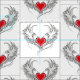 Artistisch bemalt rotes Herz mit Engelsflügeln grau, mit schwarz glatten Konturen dekoriert.