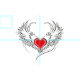 Artistisch bemalt rotes Herz mit Engelsflügeln grau, mit schwarz glatten Konturen dekoriert.