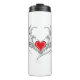 Artistisch bemalt rotes Herz mit Engelsflügeln grau, mit schwarz glatten Konturen dekoriert.