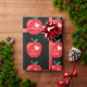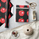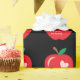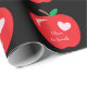 Ein schwarzes Verpackungspapier, das an eine Tafel erinnert, die mit dem Muster eines roten Apfels und einem rosa kleinen Herz im Inneren erinnert. Personalisieren Sie den Text mit Ihrem eigenen. Ideal, um Lehrergeschenke einzupacken.
