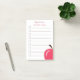 Diese nützlichen 4"x6" Post-it-Notizen werden es Lehrern ermöglichen, auf die effizienteste Art und Weise aufzuschreiben, was sie jeden Tag tun müssen. Sie haben einen Teil eines roten Apfels in der unteren rechten Ecke und die Vorlage einer Checkliste . Personalisieren Sie sie mit Ihrem Text und mit dem Namen des Lehrers . Ein originelles und praktisches Geschenk für die Woche der Anerkennung für Lehrer. © ArianeC Illustrations-Alle Rechte vorbehalten