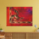 Ein abstraktes Werk in feurigen Rot und Gold. Ein deutliches rotes Juwel ist von goldfarbenen Flammen umgeben, die mit glitzernden Rubinen und gelben Sternexplosionen geschmückt sind. Die wirbelnden, spiralisierenden Fraktale im Hintergrund erscheinen in tieferen Farbtönen im goldenen Filigree des Flammenmotivs.