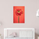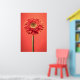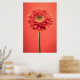 Dieses Foto verfügt über eine Red Barberton Gerbera Daisy Blume auf einem orangefarbenen Hintergrund.