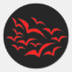 Dieses Set runder Aufkleber bietet eine Sammlung von einfachen Bildern von Fledermäusen, die in einem Wolkenmuster zusammenfliegen. Die Fledermäuse sind rot und der Hintergrund schwarz. Kinder sind sich sicher, dieses niedliche Design Liebe.