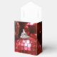 Stilvolle Geschenkboxen mit glitzerndem Weihnachtsbaum in Rot und Silber. Ein individuell anpassbares Design für Sie, um mit Ihrem eigenen Text, Bildern und Ideen zu personalisieren. Bild erstellt mit einem Original-Foto und digitale Techniken.