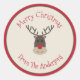 Red Beige Frohe Weihnachtssticker mit Rudolph Runder Aufkleber