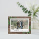 Einzigartige, klassische, trendige, hübsche und dekorative Ferienkarte. Niedlich Happy Holidays begrüßen Text und Raum, um mit einem Foto, Familiennamen (oder individuellen Namen) und der Nachricht Ihrer Wahl zu personalisieren oder anzupassen. Gerahmt von Burgunder Rotbeeren und dunkelgrünen Blätterbuketten auf einer rustikalen Hütte Bauernhaus Stil Barkholzplanken Muster Hintergrund.