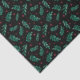 Elegantes, schwarzes Gewebpapier mit festlichem Aquarellmuster aus grünen Blätter und roten Beeren. Ideal zum Verpacken von Weihnachtsgeschenken. Eine gute Wahl für einen saisonalen Grün, Winter, Wald und rustikalen Stil Liebhaber.