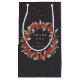 Elegantes, sanftes Schwarz, Weihnachten/Feiertag 'Danke' Geschenk oder Gunst-Tasche mit einem Kranz von Hand bemalten roten Beeren und Eukalyptus. Der gesamte Text ist vollständig editierbar, sodass Sie den Schriftart leicht ändern können. Verschiedene Taschen in verschiedenen Größen und Koordinatensets in meinem Geschäft verfügbar.