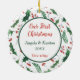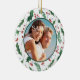 Auf diesem hübschen "Ersten Weihnachtsschmuck" befindet sich Ihr eigenes Foto in einem runden Rahmen aus grünem, heiligem Blatt und rotem Beerenmuster. Die Rückseite des Ornaments hat den gleichen Hintergrund und Kreis mit Ihrem benutzerdefinierten Text in Übereinstimmung rot und grün. Es gibt vier Textfelder, sodass Sie es sagen können, was Sie wollen.