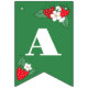 Rote, weiße und grüne Beeren, süße Babyhacken, die Fahnen für eine Babydusche zum Thema Erdbeere tragen. Entdecken Sie Ihre Babydusche mit den Fahnen aus Erdbeeren mit fetten Briefen, saftigen Erdbeeren und hübschen Erdbeerblüten in Rot, Weiß und Grün für die perfekte Sommerdekoration.