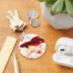 Dieses farbenfrohe Foto von Drake Fotografy zeigt einen hellen roten Betafisch, der in einer Fischschüssel schwimmt und seine Reflektion im Glas anschaut. Ein tolles Geschenk für Aquarienfreunde und Tierfreunde!