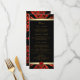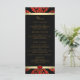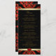 Rotes, schwarzes und goldenes Hochzeitsmenü mit rotem Satin-Herz und rotem schwarz-goldfarbenem Damast-Hintergrund. Dieses elegante Rot-, Schwarz- und Goldmenü ist einfach auf Ihre Veranstaltungsdetails zugeschnitten. Sie können das Herz entfernen oder an einen beliebigen Ort verschieben und die Größe ändern.
