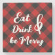 Ein roter und schwarzer Büffel Karo Hintergrund-Untersetzer mit den Worten Eat Drink and Be Merry. Ein einzigartiges Geschenk für besondere Tage wie zum Beispiel ein Geburtstag Weihnachten, oder einfach weil Sie oder Ihre besondere Person Liebe der Büffel Karo Design.