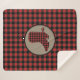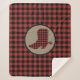 Diese attraktive rustikale Sherpa-Decke weist ein rotes und schwarzes Büffel-kariertes Muster auf. In der Mitte befindet sich ein Bräunungsbanner mit einem passenden karierten Silhouette Cowboy-Stiefel in Rot und Schwarz.