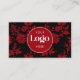 Red & Black Damask Custom Logo QR Code Template Visitenkarte