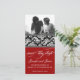 Eleganter roter schwarzer Damaskus Save the Date Fotokarte. Verwenden Sie diese eleganten Save the Date mit aufwändigen Damast-Mustern und Drehbuch Dankeschön-Text, um Ihre Hochzeitsankündigung an Ihre zukünftigen Hochzeitsgäste zu senden. Fügen Sie Ihr eigenes Foto hinzu und personalisieren Sie Ihre Nachricht. Beispiel Foto nur wie gezeigt. Schriftart und Grafiken lizenziert für die Verwendung. Design von Elke Clarke ©