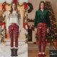 Red Black Diagonal Stripes Graphic Bow Leggings