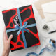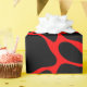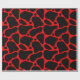 Abstrakte rote Giraffen drucken nahtlose Muster über schwarzen Hintergrund.