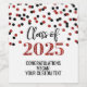 Graduation Party individuelle Weinflaschen Etiketten Klasse von 2025 mit rot-schwarz Glitzer Muster confetti.