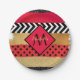 Red Black Gold Glitzer Pinselstriche Mit Monogramm Pappteller