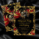 Red Black Gold Magical Night Masquerade Party Masquerade Birthday Party Invitation. Pretty silver and diamond mask & feather jewels. Please note: All flat images! Use for any age. “Please note: Zazzle shows ONE sample by default.