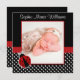 Feiern Sie die Ankunft Ihres kleinen Mädchens mit dieser niedlichen Ladybug-Foto-Geburtsankündigung. Mit einem Ladybug auf einem Polka Dot Hintergrund. In Rot, Schwarz und Weiß dargestellt. Einfach personalisieren! DAS FOTO DER PROBE IST NICHT ENTHALTEN. ERSETZEN SIE DAS FOTO VOR DER BESTELLUNG.
