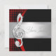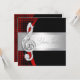 Elegantes Rot und Schwarz mit silberner Musik Einladungs-Vorlage. Diese elegante Rot-Schwarz-Treble-Klettmusik-Einladung arbeitet für eine Konzerteinladung, Klavierabend, Symphonie-Einladung oder jede andere musikalische Aufführung. Um Ihre Veranstaltung individuell zu gestalten, wählen Sie einfach den Button "Anpassen!", um Ihre Veranstaltungsdetails, Ihren Schriftart, die Größe und Farbe des Schriftartes und den Wortlaut hinzuzufügen. Bitte beachten Sie - alle Einladungen, die Sie auf Zazzle finden, sind gedruckte Grafiken auf flachem Papier ohne Aufhängung oder ohne Zusatz von Teilen oder Teilen.