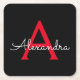 Untersetzer für einfache, schwarze und rote Skriptmonogramm-Namenspapiere. Dies macht den perfekten Abschluss, Geburtstag, Hochzeit, Brautparty, Jubiläum, Babydusche oder Junggeselinnen-Abschied Geschenk für jemanden, die Lieben glamourösen Luxus und schicke Stile.
