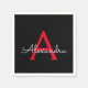 Schwarz und Rot Monogramm Fügen Sie Ihren eigenen Namen Papier Party Napkins. Das macht den perfekten 16 Geburtstag, Hochzeit, Brautparty, Jubiläum, Babydusche oder Junggeselinnen-Abschied Geschenk für jemanden, der Lieben glamourösen Luxus und chic Skriptstile.