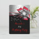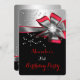Red Black Silver Bow Pearl Birthday Party Einladung