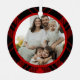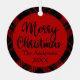 Celebrate the warmth of family and the joy of Christmas with this classic red and black tartan plaid photo ornament. Designed with a timeless holiday palette, it frames your treasured family photo in a clean circular border. The reverse side features elegant hand-lettered “Merry Christmas” script, paired with a customizable family name and year in a refined serif—simple, polished, and ready to become a keepsake they’ll display year after year.