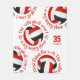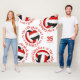 This cool volleyball themed fleece blanket features 5 randomly arranged red, black and white volleyballs with the text, "The volleyball court is my happy place" in red encircling each volleyball in a cool typographic font, all on a white background - her name and jersey number are customizable - by katz_d_zynes