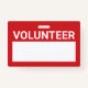 Red Blank Volunteer Name Tagmit Titel in weiß fett Sans Serif Schriftart mit weißem Leerzeichen für Ihren Namen auf rotem Hintergrund.