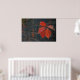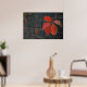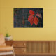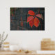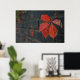 Ein Poster mit roten Blätter und dunkler Wand als Hintergrund