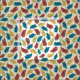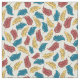 This playful pattern coordinates with designs from my Happy Bird-Day collection and features cartoon style illustrations of feathers in red, yellow and blue set against an off-white or cream colored background.