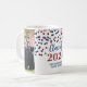 Maßgeschneiderte Fotomodulationsklasse 2024 Abschluss Tasse mit roten, blauen Konfetti Mustern.