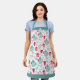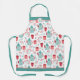 Diese niedliche Schürze ist mit einem blauen, roten, rosa und weißen Muster aus Kaffeetöpfen, Tassen, Zuckergläsern und Löffeln im bohenhaften Stil sowie Blume- und Beerenbildern ausgestattet. Oben und unten sind die blauen, die blauen und die blauen, die blauen, blauen, auf einem Kreis-Banner oben. Hübsch und auch personalisiert.