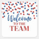 Red Blue Confetti Willkommen im Team Quadratischer Aufkleber