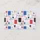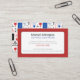 Elektrische Visitenkarten (oder andere elektrische Profis), die mit einem Muster auf der Rückseite mit verschiedenen Elementen und Symbolen wie Glühbirnen, Steckdosen, Sicherungen und mehr, in rot, blau und schwarz. Die Vorderseite hat einen roten Rahmen mit Ihrer beruflichen Kontaktpersonalisierung in Rot, Blau, Schwarz und Grau auf Weiß. Sie sind ein modernes Visitenkartendesign für den zertifizierten Elektriker, den beruflichen Handwerker oder andere Händler, die Strom verbrauchen.