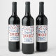 Graduation Party individuelle Weinflaschen Etiketten Klasse von 2025 mit rot und blau Glitzer Muster confetti.