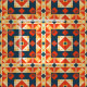 Modernes, lebendiges Stoffdesign mit einem nahtlosen Muster aus geometrischen Formen in Rot, Dunkelblau, Orange und Gelb.