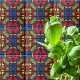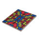 Einzigartig auffälliges dekoratives Fliesendesign mit abstrakten handgezeichneten Ornamenten in Rot, Blau, Gelb und Schwarz.
